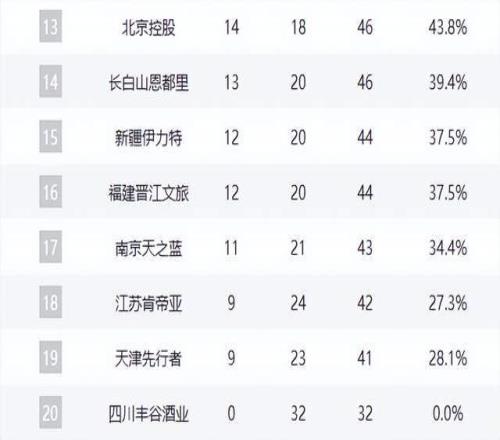 季后賽邊緣球隊競爭尤為激烈:北控隊(14勝18負)排名第13,吉林隊(13勝20負)第14,新疆、福建同以12勝20負并列第15、16位,仍有理論上的沖擊可能。而江蘇隊(11勝22負)、同曦隊(10勝23負)、天津隊(8勝25負)與四川隊(7勝26負)已基本無緣季后賽,進入重建節奏。