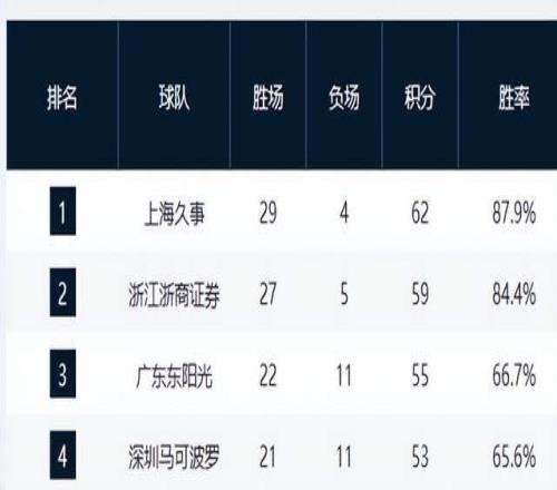 第七名青島隊(19勝12負)僅落后深圳隊2個勝場,仍存沖擊前四希望;浙江隊(18勝14負)與寧波隊(17勝15負)分列第八、第九;遼寧隊輪空,戰績同為17勝15負,位列第十;山西隊(16勝16負)緊隨其后,季后賽席位爭奪日趨白熱化。