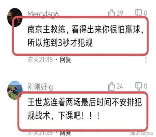 同曦主帥王世龍連續2場犯低級錯誤,賽后也被球迷紛紛吐槽。“同曦25秒落后1分,居然不犯規也不上去搶,就看著寧波外援壓時間,最后剩3秒了去犯規,這操作誰能看懂?現在當教練和球員的都不需要腦子了嗎?”:“”同曦不是一次這種操作了,前幾天有場比賽也是最后落后幾分,看著對面壓時間就是不犯規”;“南京主教練,看得出來你很怕贏球,所以拖到3秒才犯規”;“王世龍連著兩場最后時間不安排犯規戰術,下課吧!”……