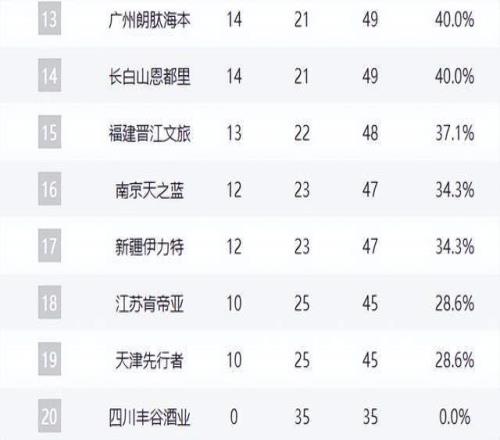 江蘇與天津落后5個勝場,基本退出競爭;四川金強則遭遇恥辱性35連敗,賽季已無懸念,重建之路漫長。