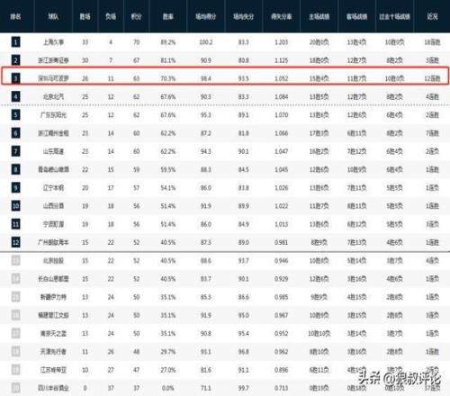 本場比賽過后,深圳男籃的戰績為26勝11負,排在積分榜第3。