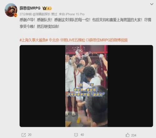 本場比賽過后,上海隊戰績來到34勝4負,領先第二的衛冕冠軍4個勝場,由于本賽季常規賽僅剩4場,那么廣廈隊頂多可以追平戰績;此外,因為兩隊交手戰績持平(1勝1負),且上海隊潛力賽戰績排名高于廣廈隊,所以上海隊已經提前鎖定常規賽冠軍。