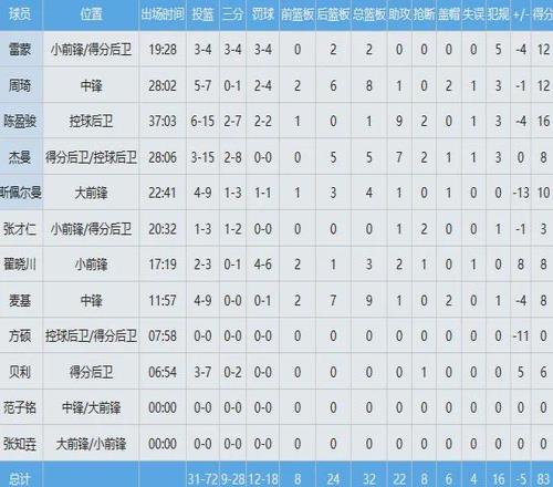 北京隊數據如下: