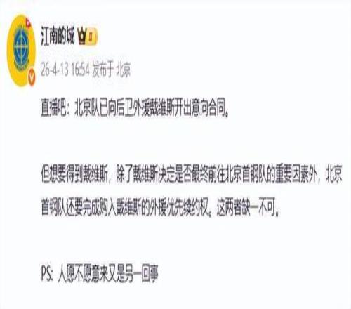 然而,能否成功簽下戴維斯,絕非僅取決于球員個人意愿。根據CBA外援轉會規則,任何球隊欲引進一名已在其他球隊注冊的外援,必須先獲得其“優先續約權”的轉讓。目前,戴維斯的優先續約權仍由南京同曦隊持有。此前,北京首鋼隊曾就該權利與同曦展開初步接觸,但雙方在報價金額上存在顯著分歧——同曦方面期望的補償金額遠超首鋼的心理預期,導致談判一度陷入僵局。