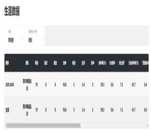 冉珂嘉今年才進入四川女籃一隊,常規賽僅僅出戰八場,場均10.8分鐘,拿到5分1.6籃板1.3助攻0.4搶斷0.1蓋帽,命中率59.3%,三分命中率41.7%。她是在全錦賽后才從二隊上調一隊。
