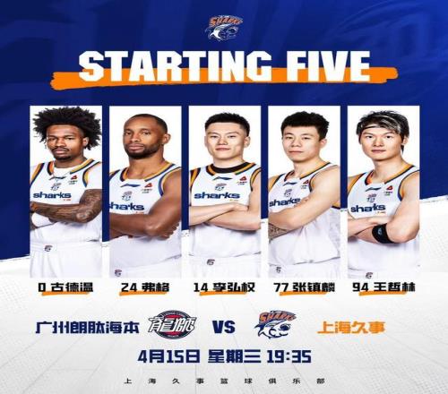 本場比賽,大鯊魚內(nèi)線外援懷特塞德和洛夫頓依舊因傷缺陣,王哲林、張鎮(zhèn)麟、李弘權(quán)和雙外援弗格、古德溫組成先發(fā)陣容。