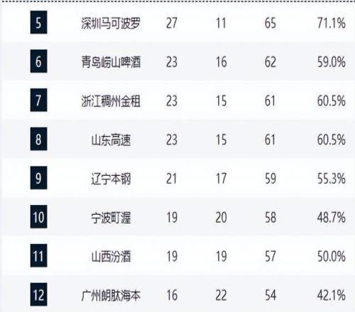季后賽席位已基本明朗:前九名球隊全部鎖定名額。青島隊(23勝16負)位列第六,浙江稠州(23勝15負)與山東高速(23勝15負)因少賽一場暫列第七、第八,仍有上升空間。遼寧本鋼(21勝17負)穩居第九,確保季后賽資格。