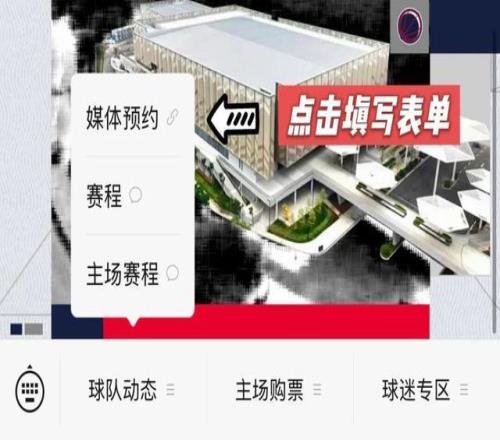 點擊俱樂部公眾號主頁左下角菜單欄【球隊動態】,選擇【媒體預約】;