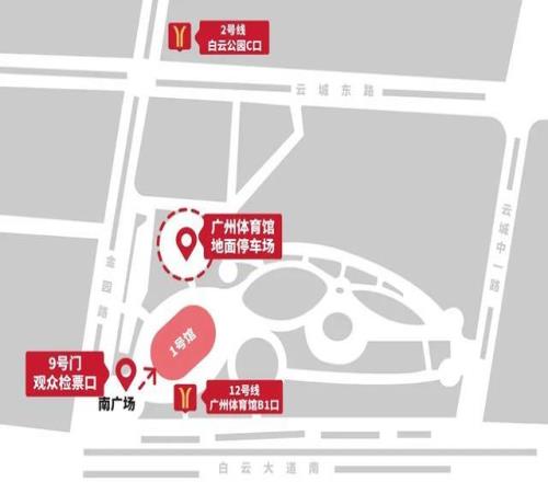 廣州地鐵2號線:從白云公園站下車,C出口出站后往東前行300米即到達場館;