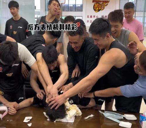 這個(gè)時(shí)候就到了摁頭的環(huán)節(jié)了,張文逸、陳家政、楊溢、奎因等人第一時(shí)間將其的頭摁在蛋糕上,以后肯定會(huì)摁回去的。不過杜潤(rùn)旺卻展現(xiàn)了一個(gè)表情包,就他這個(gè)吃瓜表情,估計(jì)會(huì)逗樂無數(shù)人,這會(huì)是這次生日的焦點(diǎn)畫面了。