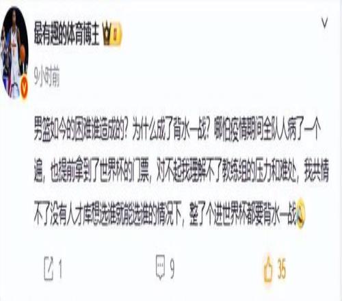 世預賽第一窗口期兩敗韓國,就充分證明郭士強的選人用人大大的錯誤。在國家隊的用人問題上,郭士強真不如杜鋒。媒體人最有趣的體育博主怒批道,“男籃如今的困難誰造成的?為什么成了背水一戰?哪怕疫情期間全隊人病了一個遍,也提前拿到了世界杯的門票,對不起我理解不了教練組的壓力和難處,我共情不了沒有人才庫想選誰就能選誰的情況下,整了個進世界杯都要背水一戰。”郭士強啊郭士強,你沒有帶上龐崢麟,而是帶著趙繼偉高詩巖這些后衛就是最大的錯誤,今晚如果再輸,你真的該自動辭職了。你們說呢?