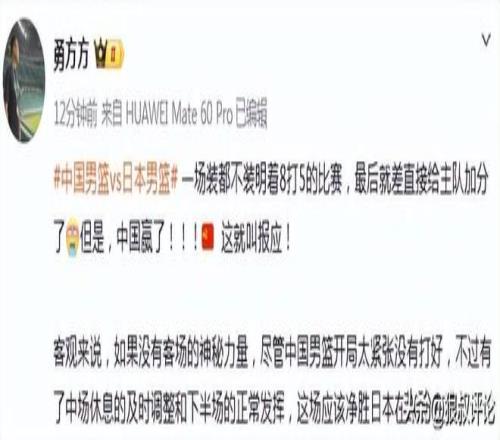 客觀來說,如果沒有客場的神秘力量,盡管中國男籃開局太緊張沒有打好,不過有了中場休息的及時調整和下半場的正常發揮,這場應該凈勝日本在20分左右。