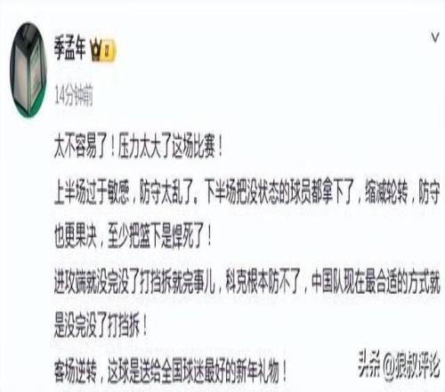 體壇周報記者季孟年發文點評:
