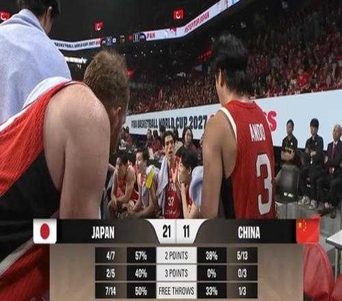 只是客場面對實力強勁的日本男籃對決,中國男籃首節開局表現不理想,一上來就0-6落后,直到趙睿突破上籃命中首球。只是中國男籃隨后依然是持續打鐵,且陷入犯規麻煩被拉開比分,首節結束中國男籃已經11-21落后10分差距。