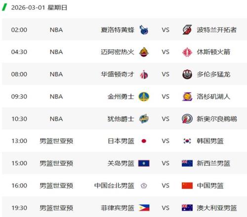 根據(jù)賽程,第四輪的比賽將在3月1日開打,中國隊客場對陣中國臺北隊,將在北京時間下午16點開打,央視CCTV5頻道現(xiàn)場直播。此外,同組的日本隊繼續(xù)坐鎮(zhèn)主場迎戰(zhàn)韓國隊的做客,開球時間是下午13點。