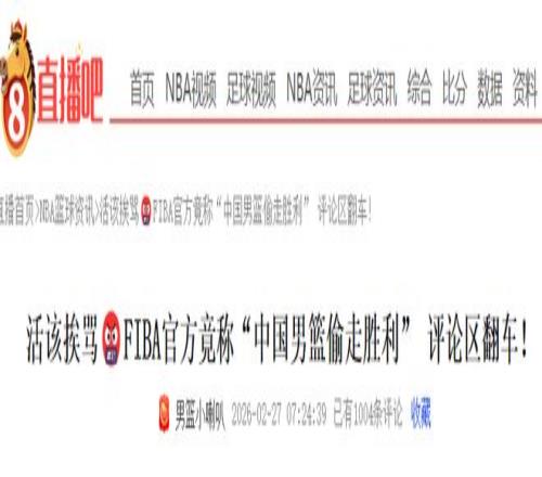 幾個(gè)小時(shí)之后,F(xiàn)IBA官方已經(jīng)將文案修改為了“中國(guó)男籃在下半場(chǎng)翻盤(pán),拿走了勝利”。