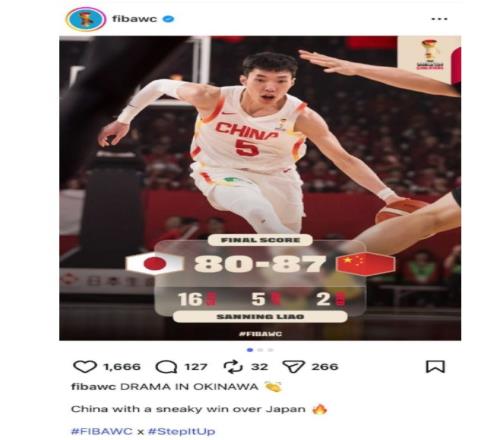 賽后,國(guó)際籃聯(lián)(FIBA)官方更新社媒,發(fā)布了中國(guó)男籃在國(guó)際大賽上對(duì)陣日本男籃的數(shù)據(jù),原文寫(xiě)道:中國(guó)隊(duì)在對(duì)陣日本隊(duì)的比賽中從落后15分的情況下逆轉(zhuǎn),這是他們?cè)趪?guó)際籃聯(lián)重大比賽中與對(duì)手的22場(chǎng)比賽中取得的第20場(chǎng)勝利。