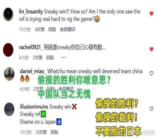 大批中國(guó)球迷涌入了評(píng)論區(qū),給FIBA世界籃聯(lián)留言怒懟:“到底誰(shuí)偷偷摸摸你自己心里有數(shù)。”、“偷摸的勝利你什么意思?中國(guó)隊(duì)當(dāng)之無(wú)愧。”、“不是偷摸的勝利,而是偷摸的裁判。”,“偷摸的勝利?偷摸的裁判!不要臉的日本!”