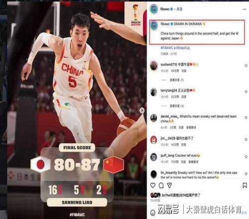 國際籃聯社媒賽后曬出戰報海報,將本場立下汗馬功勞的中國球員廖三寧登上封面,然而F配文上卻是: