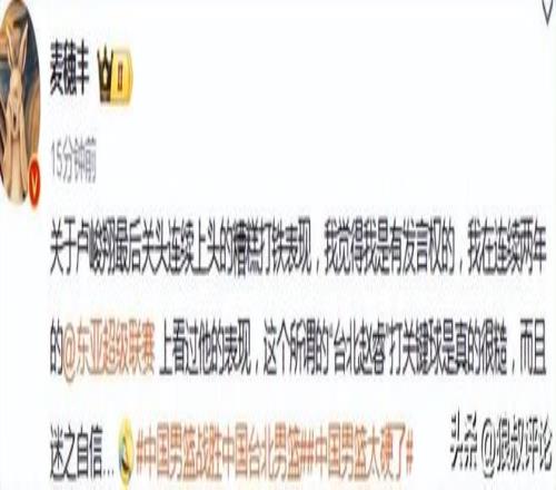 賽后,媒體人段冉發文點評: