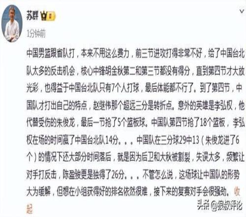 媒體人蘇群發文點評:
