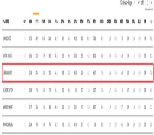詹姆斯得分湖人第三,籃板湖人第二,助攻湖人第三,命中率湖人第二,三分命中率湖人第二,正負(fù)值湖人第四,很明顯41歲勒布朗的貢獻(xiàn)被大大低估了。