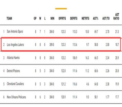 這支八連勝的湖人依靠是依靠進(jìn)攻破局,湖人這八場比賽進(jìn)攻效率123.3與馬刺并列聯(lián)盟第一,防守效率113.6聯(lián)盟第八,但凈效率9.7聯(lián)盟第四。