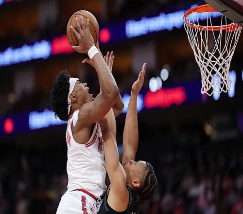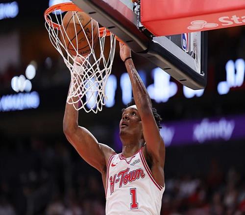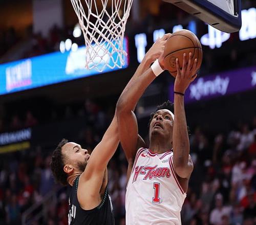 本場比賽中,火箭雖然最終有些遺憾地輸?shù)袅吮荣悾乔蜿?duì)的先發(fā)控衛(wèi)阿門-湯普森(Amen Thompson)的表現(xiàn)還是相當(dāng)不錯(cuò)的,他也是展現(xiàn)出了自己超強(qiáng)的得分能力。阿門全場出場41分43秒,投籃22中17,三分線外1中0,罰球7中7,得到了全場最高分41分外加9籃板7助攻2搶斷的準(zhǔn)三雙數(shù)據(jù),其中還包括了3個(gè)前場籃板,還有2次失誤和2次犯規(guī),正負(fù)值為+1。值得一提的是,41分也是阿門職業(yè)生涯的個(gè)人單場最高得分。