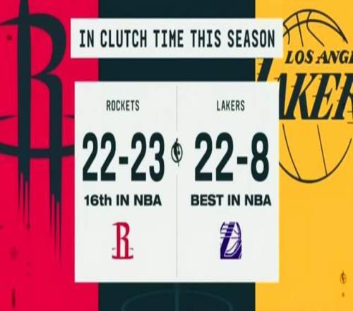 本賽季湖人歷經關鍵時刻的比賽,戰績22勝8負,高居聯盟第一;而火箭在關鍵時刻僅有22勝23負。