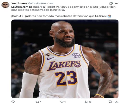 數(shù)據(jù)媒體寫道:詹姆斯的防守籃板超越帕里什升至歷史第五,歷史上只有4人的防守籃板比他多。