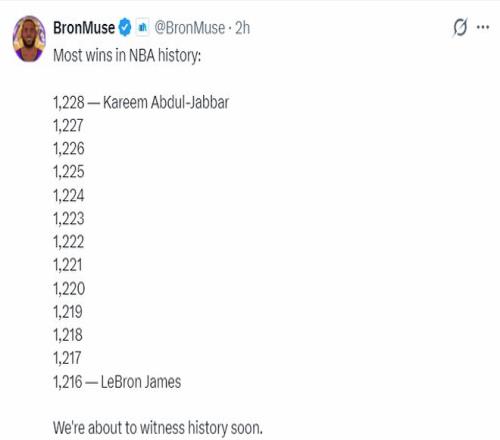 除此之外詹姆斯還坐等三項(xiàng)里程碑,此役拿到13分后他還差12分就完成43000分里程碑;詹姆斯勝場(chǎng)數(shù)1216場(chǎng),距離賈巴爾1228場(chǎng)只差12場(chǎng),詹姆斯又要?dú)v史第一;詹姆斯距離帕里什1611場(chǎng)比賽場(chǎng)數(shù)只差12場(chǎng),也要升歷史第一了。