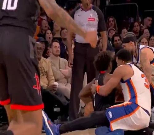 次節回來,OG-阿奴諾比里突外投連拿5分,尼克斯打出7-0攻勢領先到13分。小賈巴里底角三分再投進,目前4中4、三分2中2已經砍下10分,艱難帶隊追分。唐斯兇狠撲球 ,一屁股坐到泰特右膝致后者受傷 ,隨后一瘸一拐被隊醫攙扶下場,這個動作真危險,給個一級惡意都不過分,裁判連個普通犯規都沒有,爭議太大了。