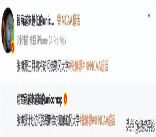 媒體人王健發文點評:“張博源三月初將訪問俄勒岡大學”