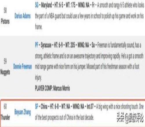NBA Draft Room評價道:“他擁有出色的投籃手感,是過去十年里中國最被看好的球員之一。”