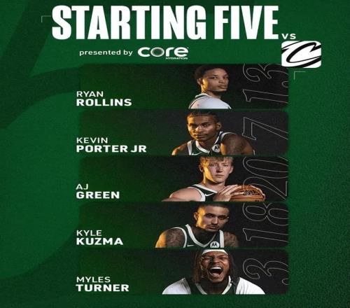 首發陣容方面,騎士隊這邊,斯特魯斯(腳部受傷)、莫布利(傷病管理)、米切爾(腹股溝)、哈登(骨折)均無法出戰,教練阿特金森排出的最新首發五人組為:韋德、泰森、梅里爾、施羅德、阿倫;雄鹿隊這邊,字母哥繼續缺陣,首發陣容則為:AJ-格林、特納、羅林斯、庫茲馬、小波特。