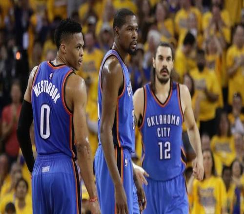 然而,到了最后的3場比賽,雙少卻出現(xiàn)了不少的問題。杜蘭特一直以來的最大問題,也就是體能不足的缺陷,在這3場比賽被無限放大,雖然場均仍然可以貢獻29.7分,但投籃和三分命中率分別降低到了42.3%和31.3%,尤其是在第6場比賽中,他總計才31投10中,直接葬送了雷霆隊終結本輪系列賽的最佳機會。
