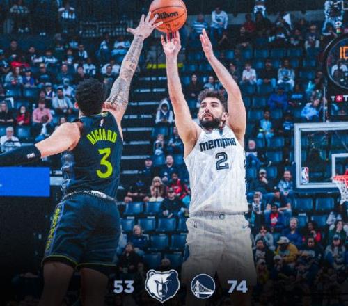 勇士上一場客場109-113惜敗鵜鶘,灰熊過去兩場連輸熱火與國王遭遇2連敗,本賽季前兩次交鋒勇士均主場戰勝灰熊。本場勇士缺少庫里、波爾津吉斯、梅爾頓、追夢與巴特勒,灰熊缺少莫蘭特、克拉克、阿爾達馬、李凱爾與科沃德。首節開局勇士7-3領先,灰熊連得4分追平,雙方纏斗至勇士11-10領先。勇士多點開花擴大5分優勢,灰熊連得5分追平,雙方繼續纏斗至勇士25-24領先。勇士連得5分,灰熊沖擊內線咬住比分,首節結束勇士34-31領先灰熊。首節勇士23中14達到6成準星,其中三分12中5;灰熊23中11,其中三分11中4。