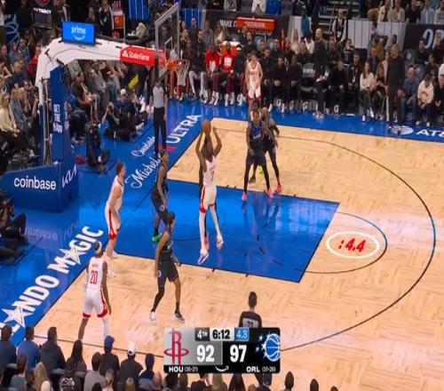 ——剩下5分鐘前,班凱羅上籃,火箭落后2分,杜蘭特再一記中投追平