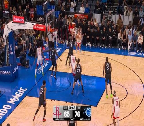 火箭這場贏得非常艱難,他們在第三節剩下5分鐘前一度以57-76落后19分,隨后不到半節時間,火箭打了魔術一波21-0。