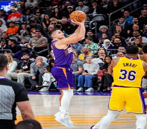 次節(jié)開場(chǎng)吉萊斯皮連續(xù)命中兩個(gè)三分,太陽打出一波13-4直接反超比分,雷迪克只能暫停。里夫斯完成了一個(gè)上下步的出手,拉拉維亞命中一個(gè)三分,東契奇連拿6分湖人隊(duì)迎頭趕上,太陽在第二節(jié)一度領(lǐng)先十分之多,不得不說湖人的得分爆發(fā)力很強(qiáng),半場(chǎng)打完湖人與太陽打平,東契奇拿到18分,詹姆斯拿到9分。