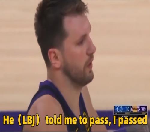 最后時刻的操作更是讓人無語,湖人6秒發邊線球,本來有機會絕殺,但是東契奇最后時刻大空位不投,關鍵時刻猶豫,最后時刻把球傳給詹姆斯,詹姆斯超難翻身跳投三分沒進,比賽輸了。賽后的氛圍非常不對勁,東契奇在最后時刻被捕捉到唇語:他(詹姆斯)讓我傳的,我就傳了而已。言下之意是:別怪我,他讓傳的啊!