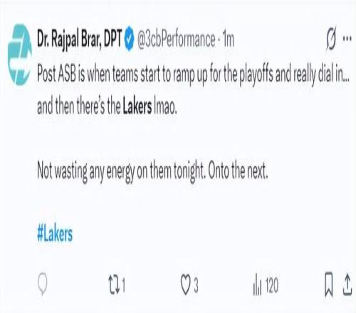 賽后專家Rajpal 寫道:在常規賽的最后階段各隊都在為季后賽做準備,全力以赴。。。。而湖人真實讓人捧腹大笑。我們不該對他們抱有期待,接著往下走吧。