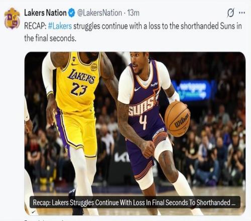 賽后湖人隊也登上了全美第一熱搜,一方面湖人已經遭遇三連敗,他們距離附加賽只剩下1個勝場,另一方面湖人隊已經連續兩場比賽被準絕殺了。
