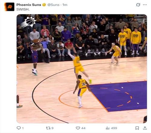 ESPN曬出布克、狄龍兩個核心在場下看戲,東契奇還拿到41+8+8的數據還是湖人輸,本賽季太陽面對湖人3勝1負。