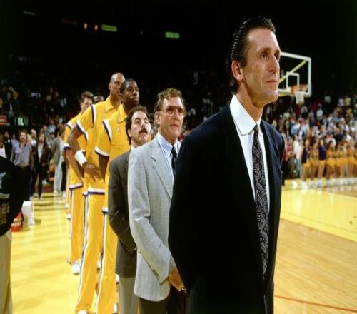 如果說最初的形象是為了匹配“表演時刻”的浮華,那么萊利用持續的勝利和卓越的執教,將這種風格升華為一種領導力的象征。他帶領湖人在1982、1985、1987和1988年四奪總冠軍,打造了80年代最具觀賞性的球隊之一。