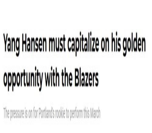 楊瀚森從來就不是一個下限穩妥的球員。開拓者當年選他是放手一搏,希望能淘到寶貝。但目前為止,他的大部分時間都是坐在替補席上。今年3月,楊瀚森或許終于能站上“擊球區”,希望他能直接一棒打出本壘打。