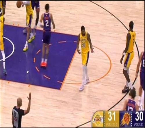 一個仙人指路的四分衛精準長傳助,拉拉維亞輕松打進2+1,湖人3節領先30分。