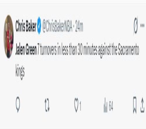 此役杰倫-格林拿到全隊最高的20分,31分鐘,16中7,三分8中2,罰球4中4,拿到20分4籃板1助攻4搶斷1蓋帽7失誤,命中率43.8%,三分命中率28.6%,正負(fù)值+8。此役杰倫-格林7次失誤創(chuàng)造了太陽生涯新高,他上一次單場7個失誤還要追溯到2025年1月29日(火箭VS老鷹)