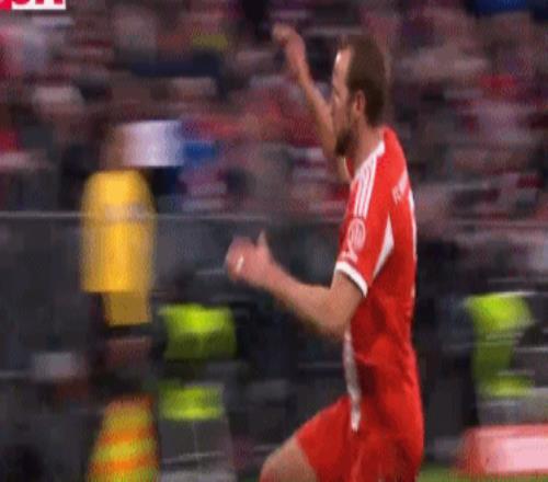 第68分鐘,基米希中場斷球,凱恩轉身左腳精準遠射破門,完成了雙響炮。打入世界波之后,凱恩瘋狂慶祝。