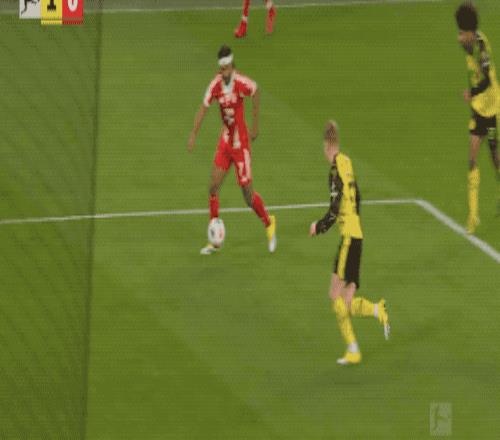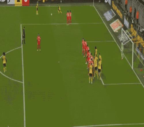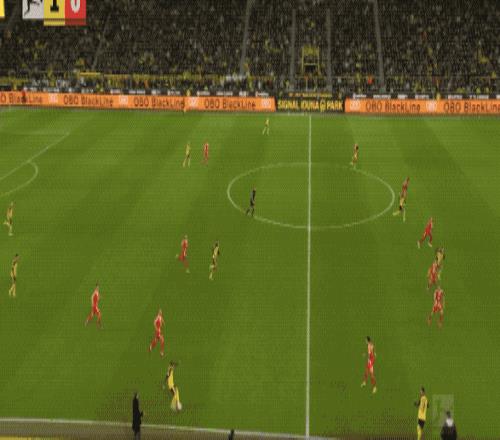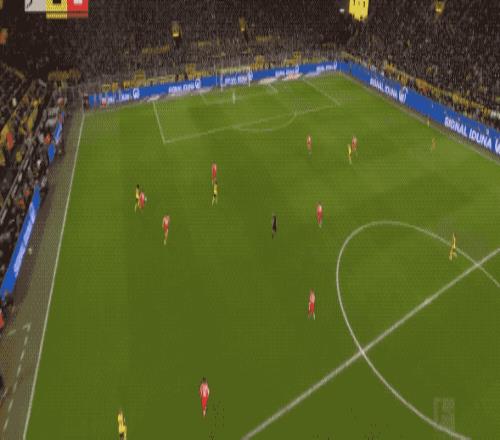 第32分鐘,多特蒙德的進攻簡單直接,斯文松傳中,拜爾背對球門,射門有些勉強。